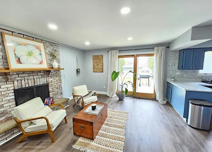 Deze gesitueerde in Gurnee Modern 4Br Near Six Flags & Naval Base Villa beschikt over een ingerichte kitchenette met een koffie/theezetapparaat, een koelkast en keukengerei om maaltijden te bereiden. Tacos El Durango bevindt zich op maar 1 km van deze woning en serveert Mexicaanse gerechten. Het busstation Washington & Greenleaf bevindt zich binnen een paar straten van deze 2-slaapkamer Modern 4Br Near Six Flags & Naval Base Villa en biedt vervoersalternatieven in de omgeving.